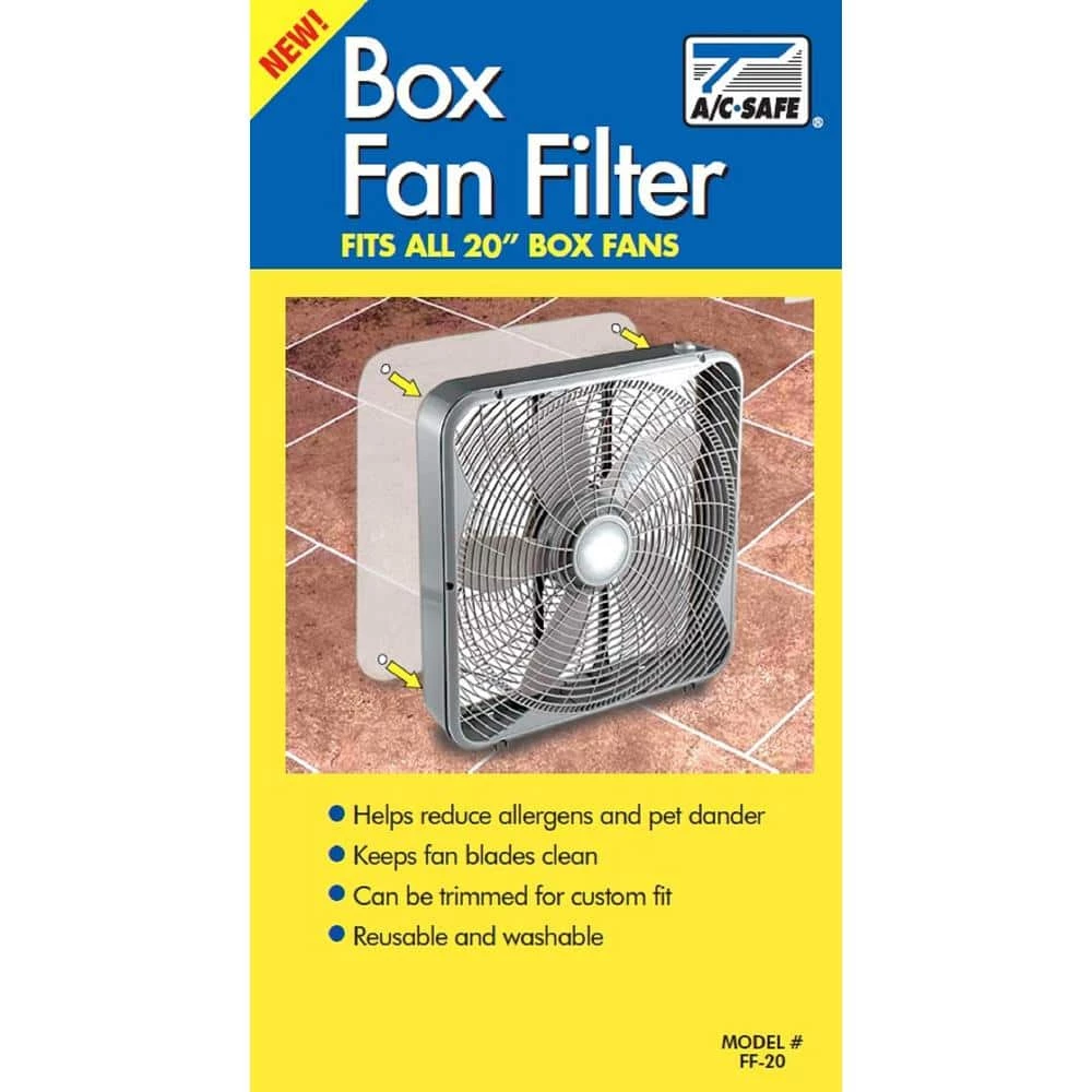 The Box Fan Filter for 20 in. box fans is custom-sized to fit almost all 20 square box fans. It is made of a special blend of polyester synthetic media that is designed to be washable and air dried making it good for multiple uses. The filter protects you from large particles sticking to your fan and the further spread of airborne contaminants.