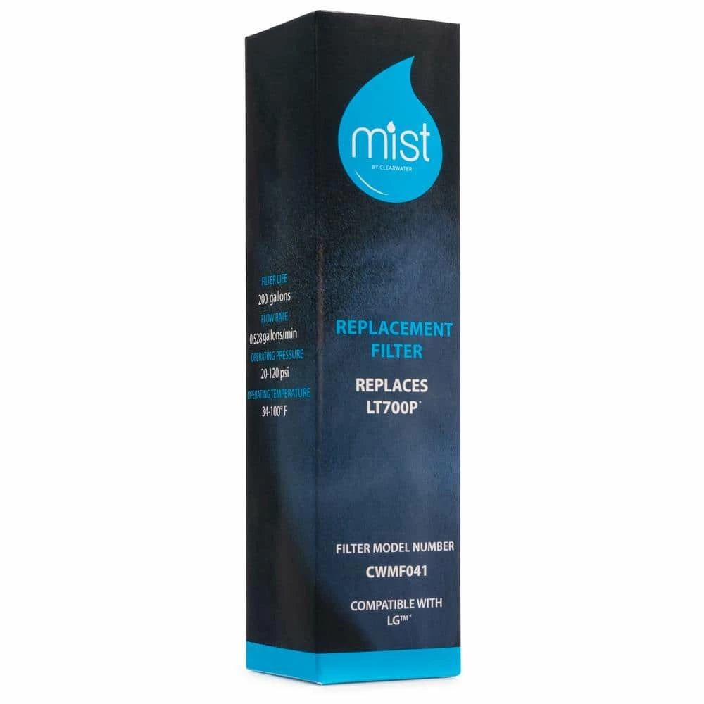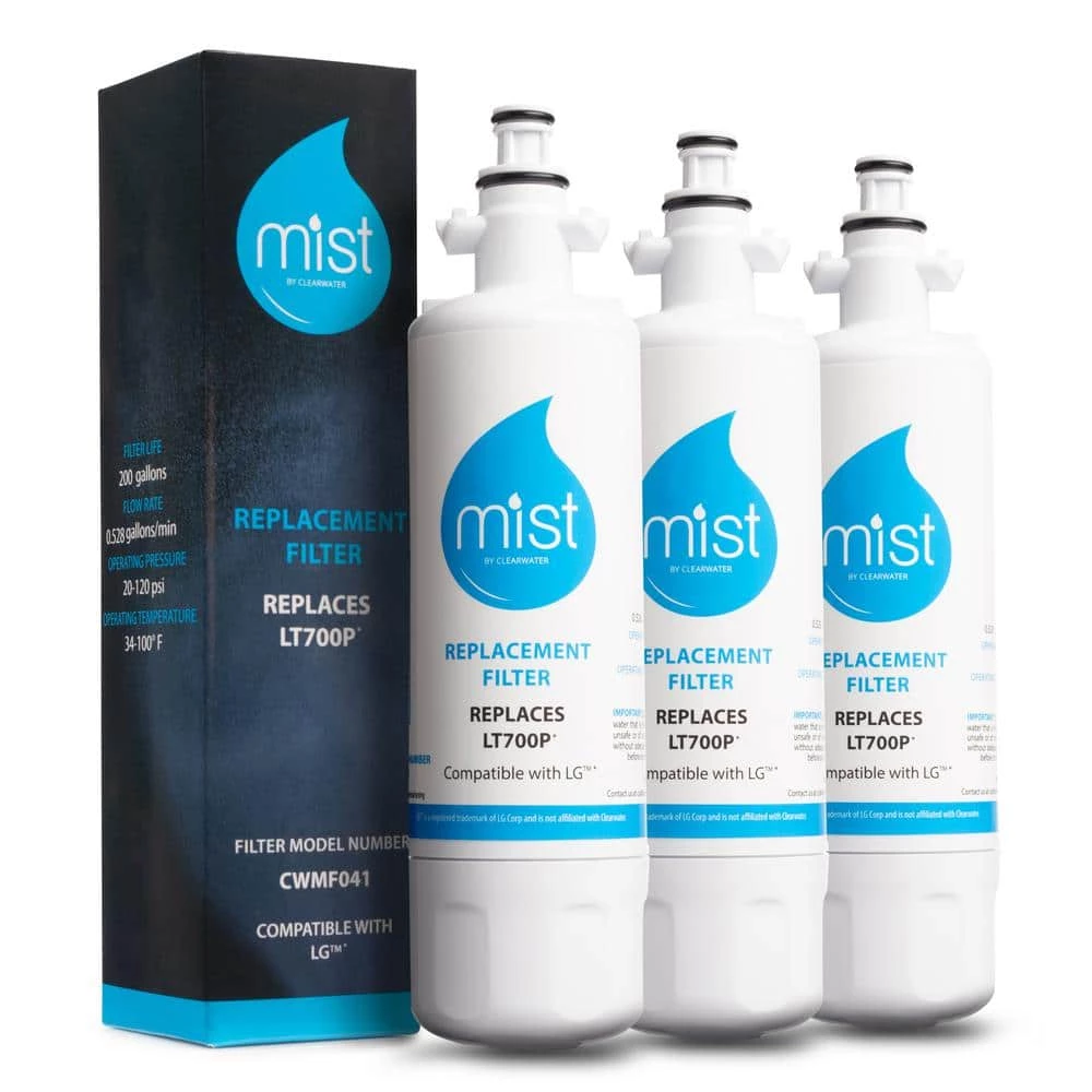 High quality, affordable activated carbon filter replacement for LG LT700P, ADQ36006101, ADQ36006101-S, ADQ36006101s, ADQ36006102, ADQ36006102-S, ADQ36006102S, 9690, 46-9690, Kenmore 469690, Water Sentinel wsl-4. Mist filter line by Clearwater the Higher standard in affordable water filtering. Will fit and lock in all compatible refrigerators, guaranteed.