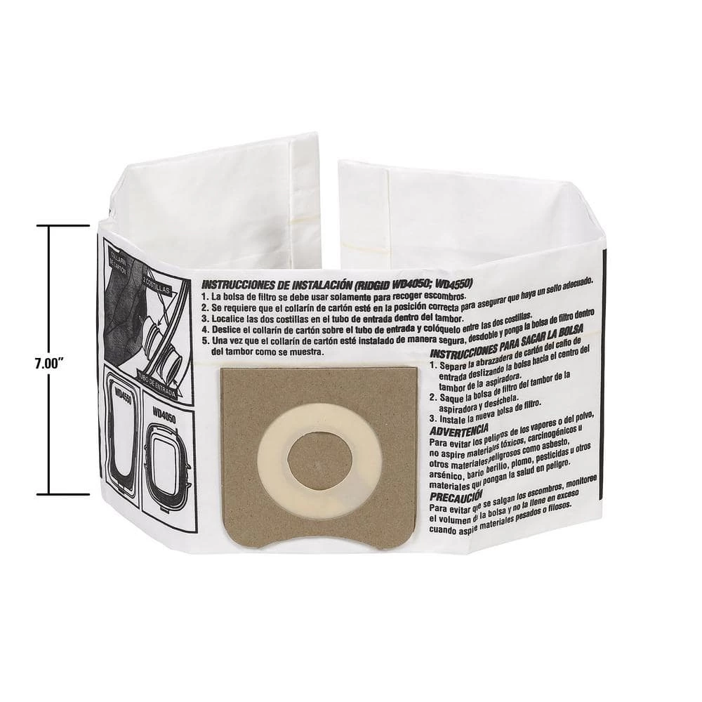 - Pair your dust bag with a shop vac filter to help optimize vacuum performance – RIDGID offers a wide range of replacement dry filtration options (sold separately) as well as a wet pickup option (sold separately)