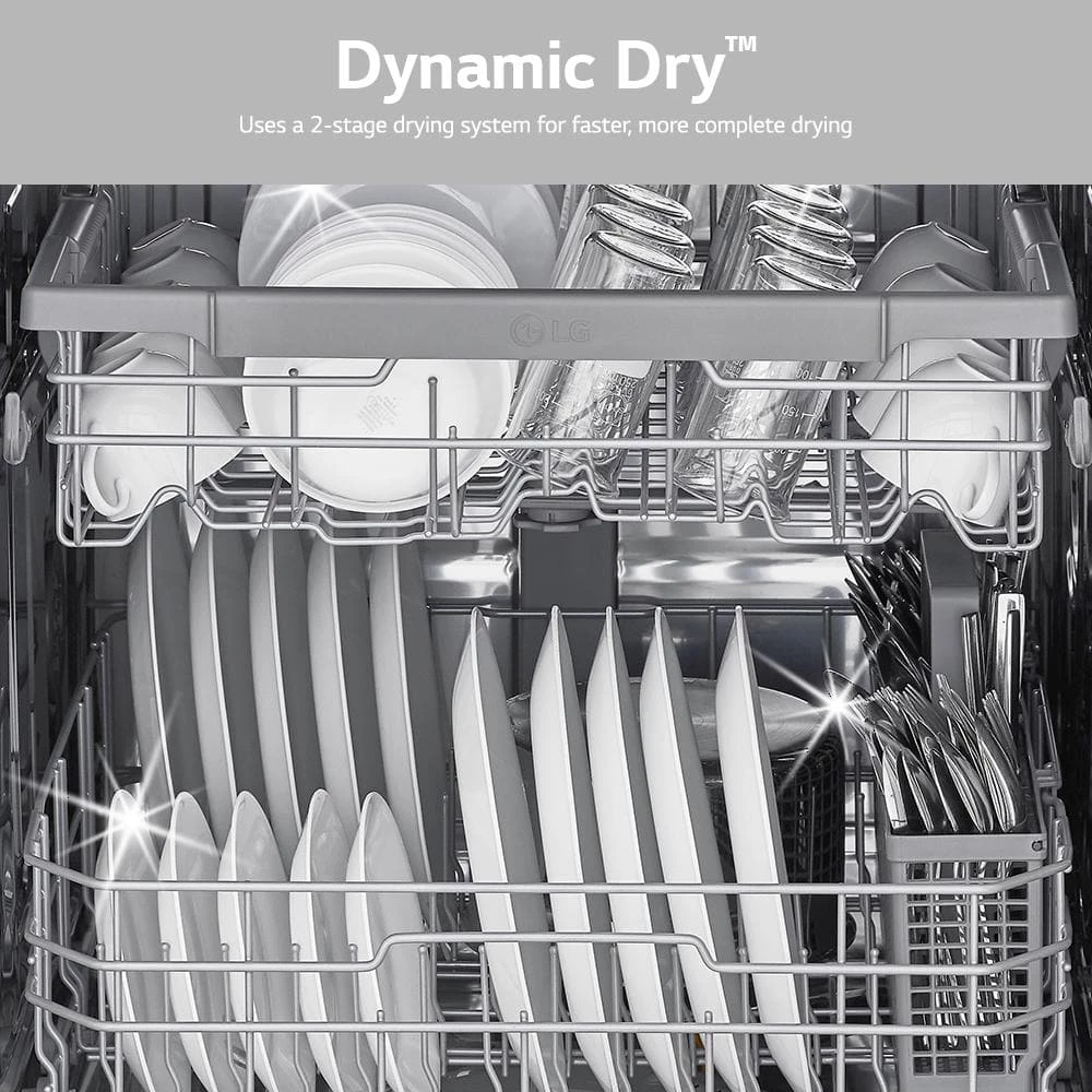 - Dynamic dry technology on all LG dishwashers uses a 2-stage drying system for faster, more complete drying