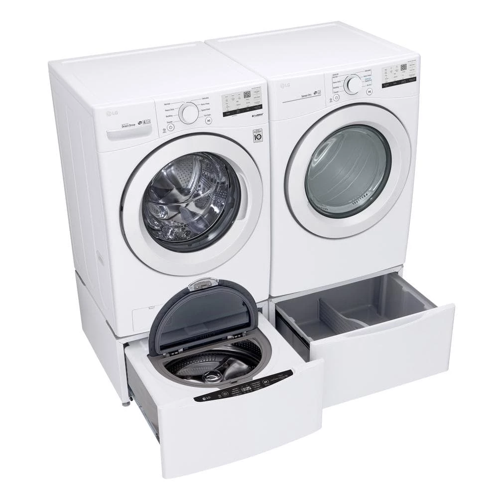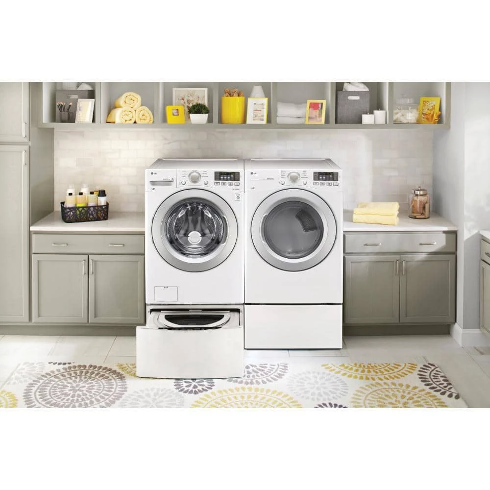 What’s better than an LG front load washer and dryer pair? An LG front load washer and dryer pair on matching pedestals. These sturdy bases elevate your appliances off of the floor by more than a foot for more comfortable loading and unloading. And, with plenty of storage space for everything from detergent bottles to dryer sheets, they’ll even help you rise above laundry room clutter