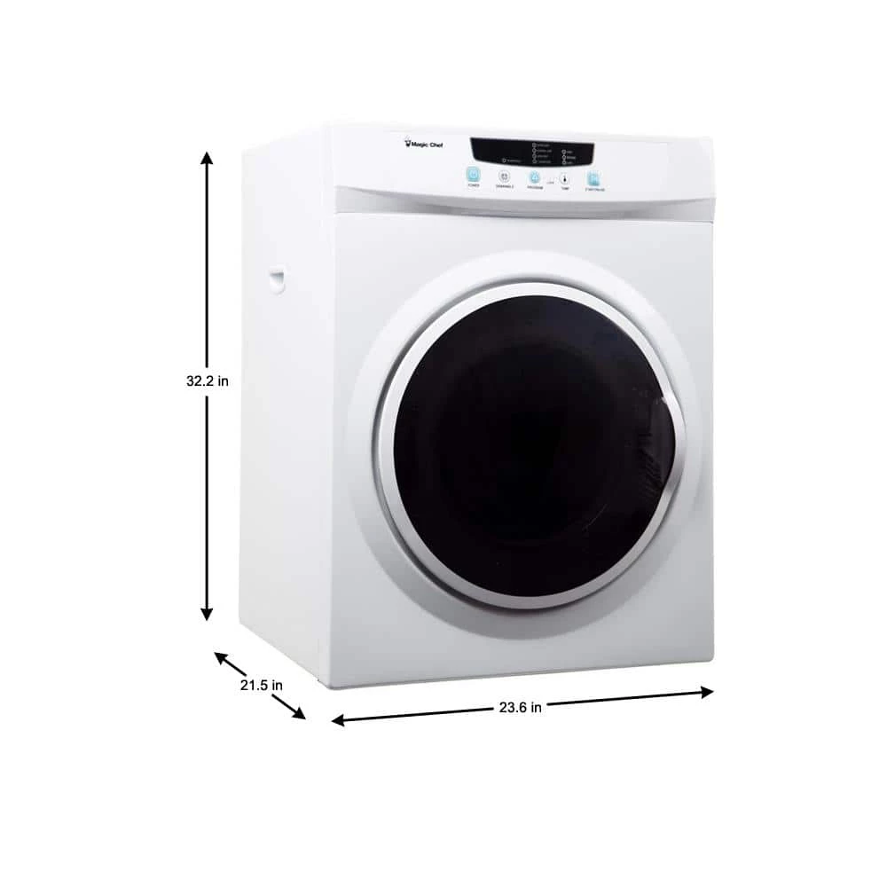 Lighten up laundry day with this Magic Chef compact 3.5 cu. ft. electric dryer. Perfect for apartments, dorms and vacation homes,you can mount it on a wall or place it on a countertop to save space. It’s equipped with three temperature settings for proper fabric care. This dryer has an ECO Mode and Sensor Dry Selector for energy efficiency and uses a standard 110 V outlet.