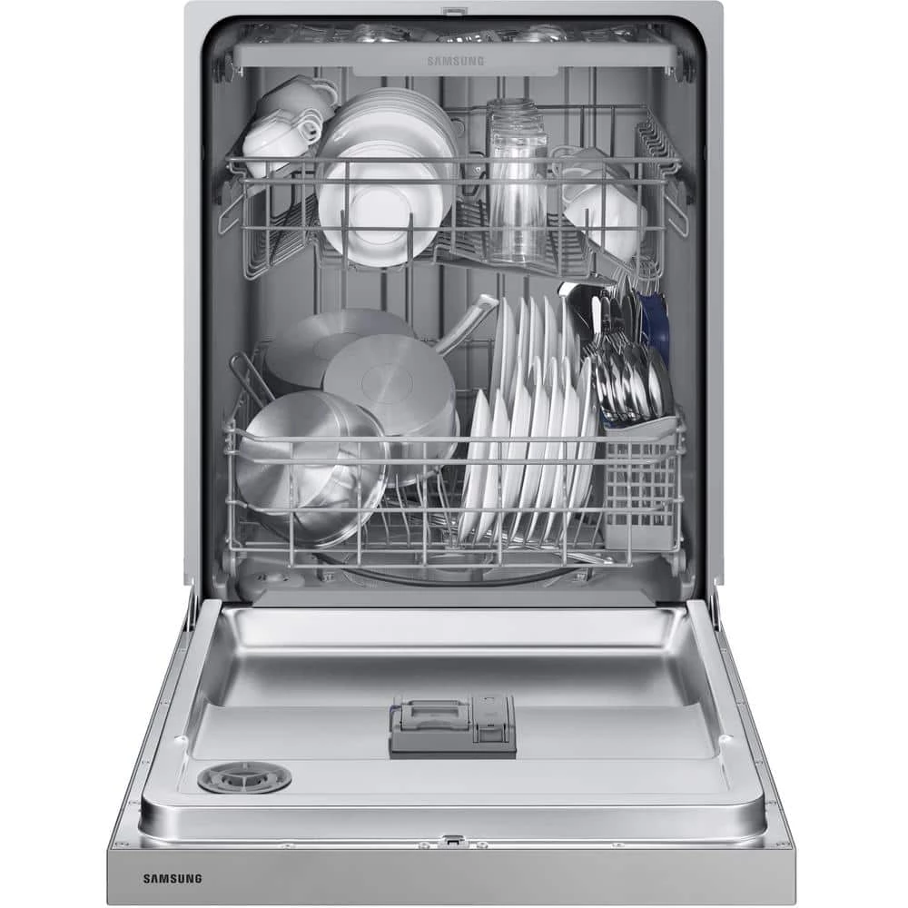 The Samsung 24 inch dishwasher with easy to use digital touch controls offers the flexibility of a 3rd rack to easily accommodate dishes of various shapes and sizes. The interior door is made from stainless steel making it more durable and hygienic. A perfect quiet dishwasher for every home.