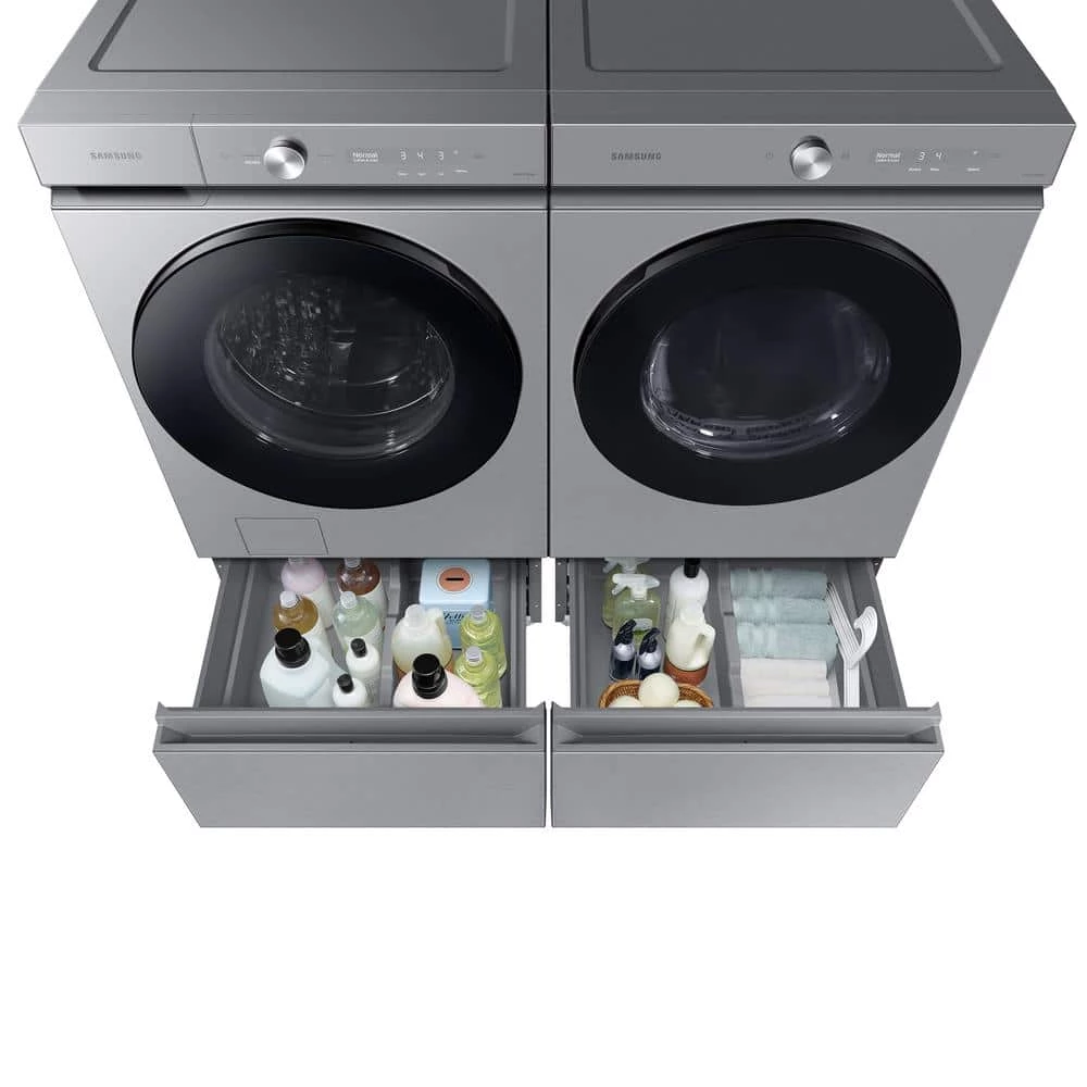 Designed to pair with Samsung Bespoke Front Load washers and dryers. This 27 in. W pedestal will allow you to lift your Bespoke washer or dryer by more than a foot for a more convenient height. It also provides an easily accessible built-in storage drawer, so you can tidy up your laundry space.