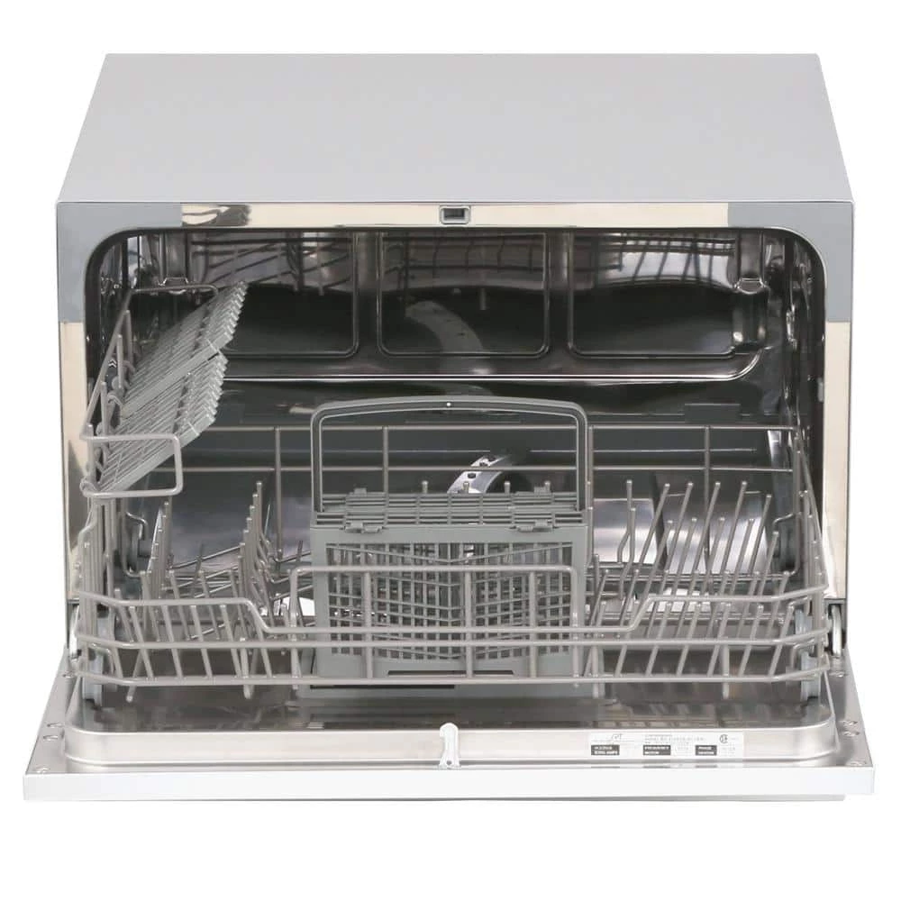Perfect for apartments, office kitchens or any small-sized kitchens; offers full-size power in a compact design. With a height of only 17.24 in., this unit will fit between most countertop and cabinetry. Spacious cavity loads up to 6 standard place settings. Features automatic detergent and rinse-aid dispenser. Quick connect to most kitchen faucets eliminates the need for direct plumbing or permanent installation.