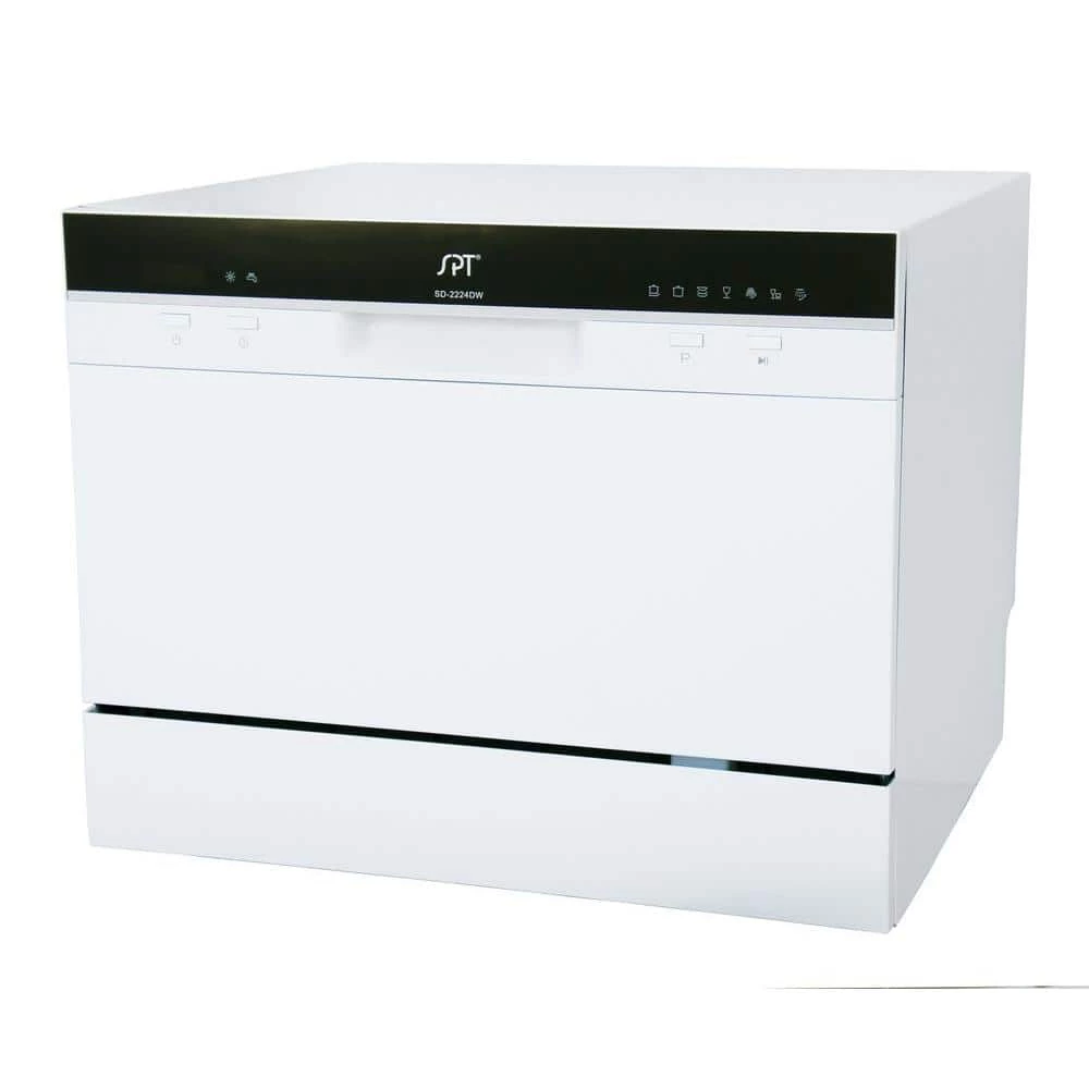 Perfect for apartments, office kitchens or any small-sized kitchens; offers full-size power in a compact design. With a height of only 17.24 in. this unit will fit between most countertop and cabinetry. Spacious cavity loads up to six standard place settings. Features automatic detergent and rinse-aid dispenser. Quick connect to most kitchen faucets eliminates the need for direct plumbing or permanent installation.