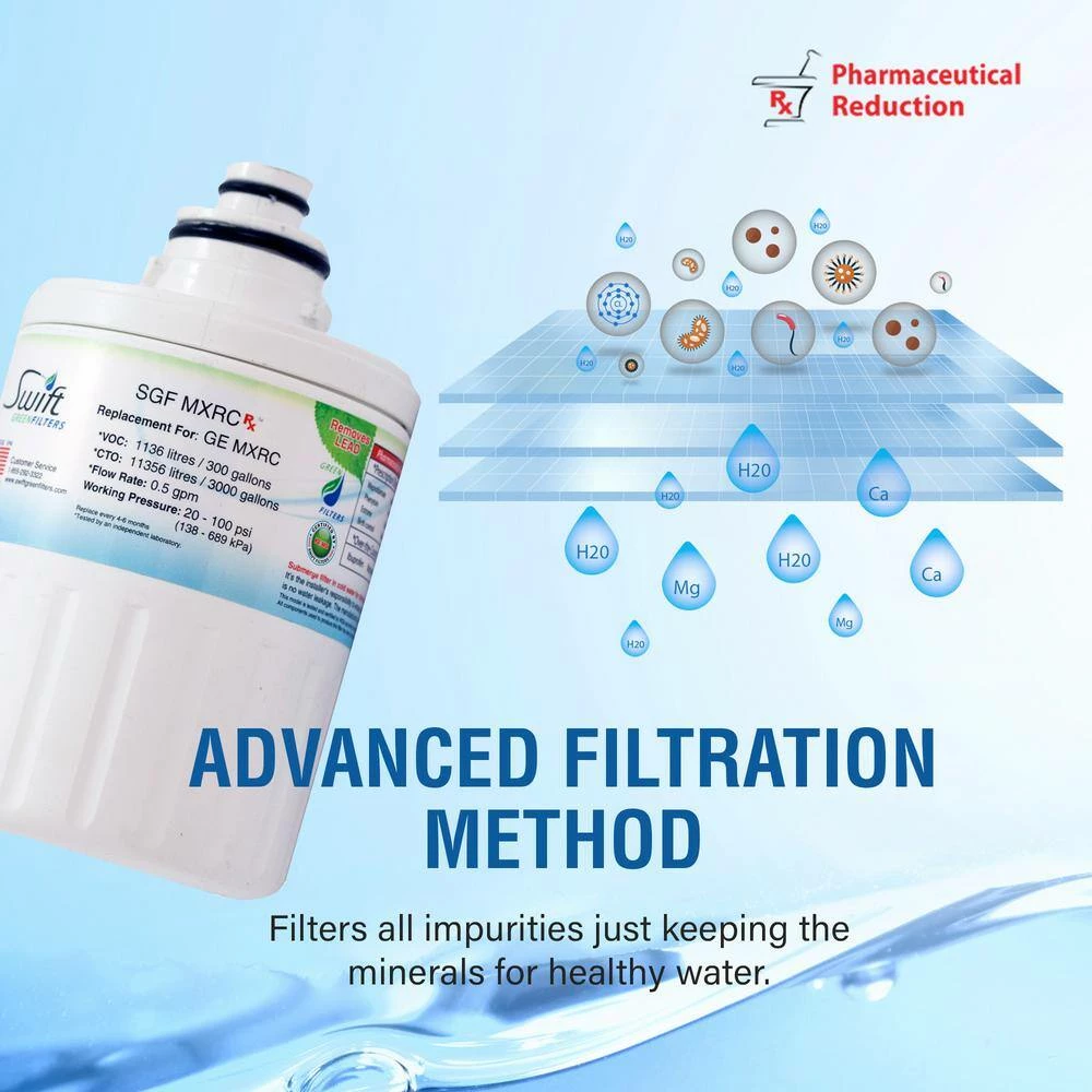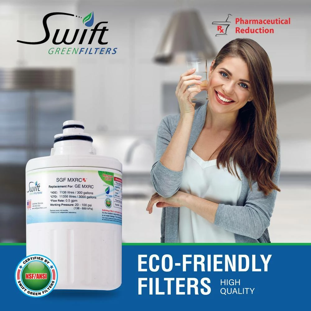 - Industry certified to meet NSF/ANSI 42, 53 or 401 standard, Swift Green Rx using advance scientific purification process reduces chemicals, including pharmaceuticals, Volatile organic compounds (VOC), Chlorine Taste and Odor (CTO), pesticides, waterborne parasites, lead, Cyst, mercury, asbestos, chlorine and other industrial chemicals