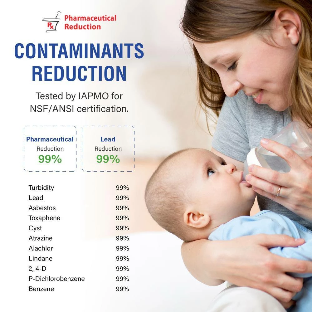 - Industry certified to meet NSF/ANSI 42, 53 or 401 standard, Swift Green Rx using advance scientific purification process reduces chemicals, including pharmaceuticals, Volatile organic compounds (VOC), Chlorine Taste and Odor (CTO), pesticides, waterborne parasites, lead, Cyst, mercury, asbestos, chlorine and other industrial chemicals
