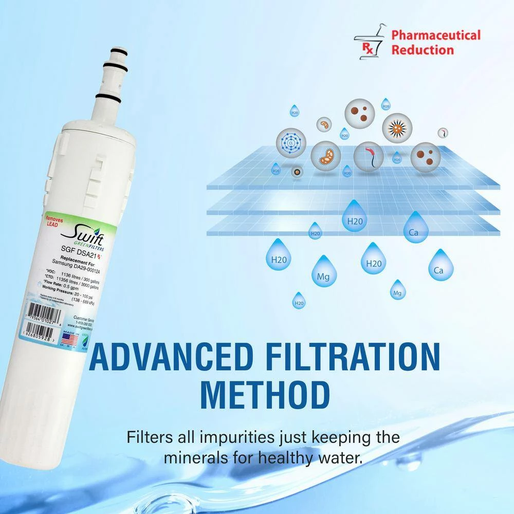 - Industry certified to meet NSF/ANSI 42, 53 or 401 standard, Swift Green Rx using advance scientific purification process reduces chemicals, including pharmaceuticals, Volatile organic compounds (VOC), Chlorine Taste and Odor (CTO), pesticides, waterborne parasites, lead, Cyst, mercury, asbestos, chlorine and other industrial chemicals