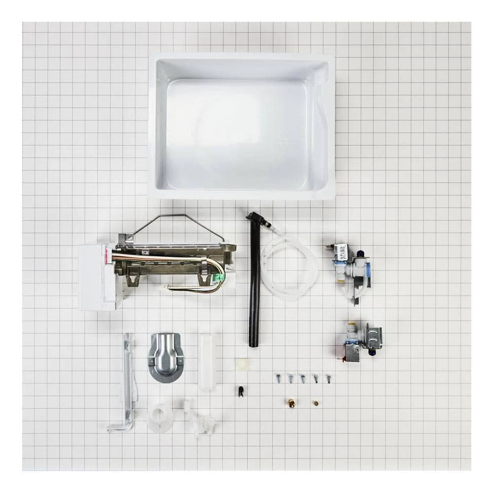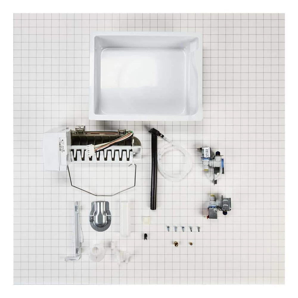 This Ice Maker Kit includes the items required to add an ice-making feature to your current refrigerator. This complete kit includes (1) ice maker assembly, (1) ice bucket, (1) Jumper harness as well as all mounting hardware and installation instructions. Please check your appliance’s use and care manual to ensure this is correct for use with your appliance. Installing this assembly will require basic hand tools, minor disassembly of the refrigerator and novice repair experience. Be sure to unplug the refrigerator or shut off the house circuit breaker for the appliance before installing. You must also turn off the water supply to the refrigerator before installation.