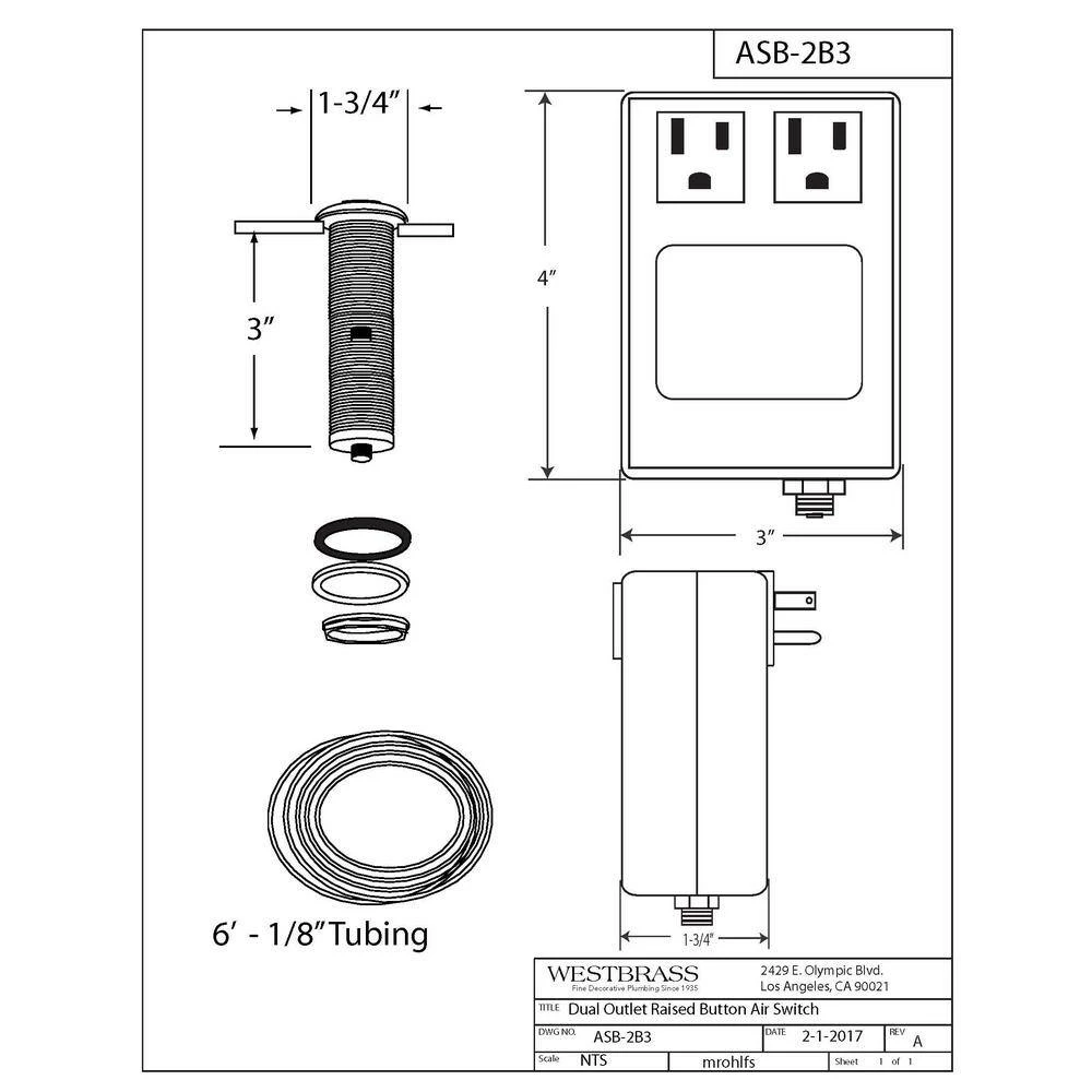 - No-shock dual outlet control box toggles between 2 outlets – use with disposal, hot water or chiller units